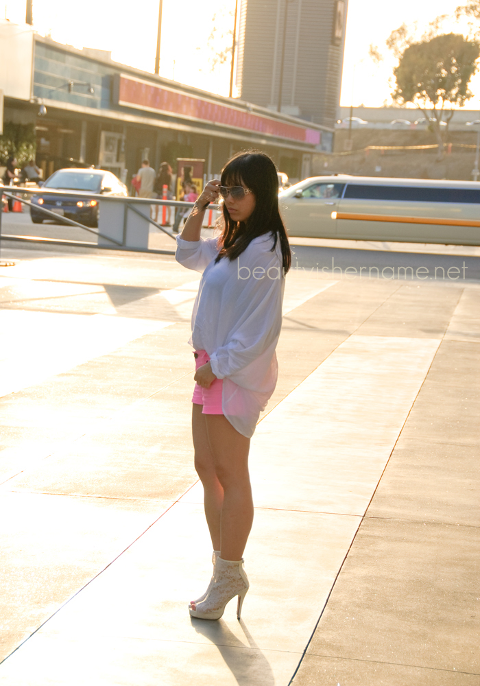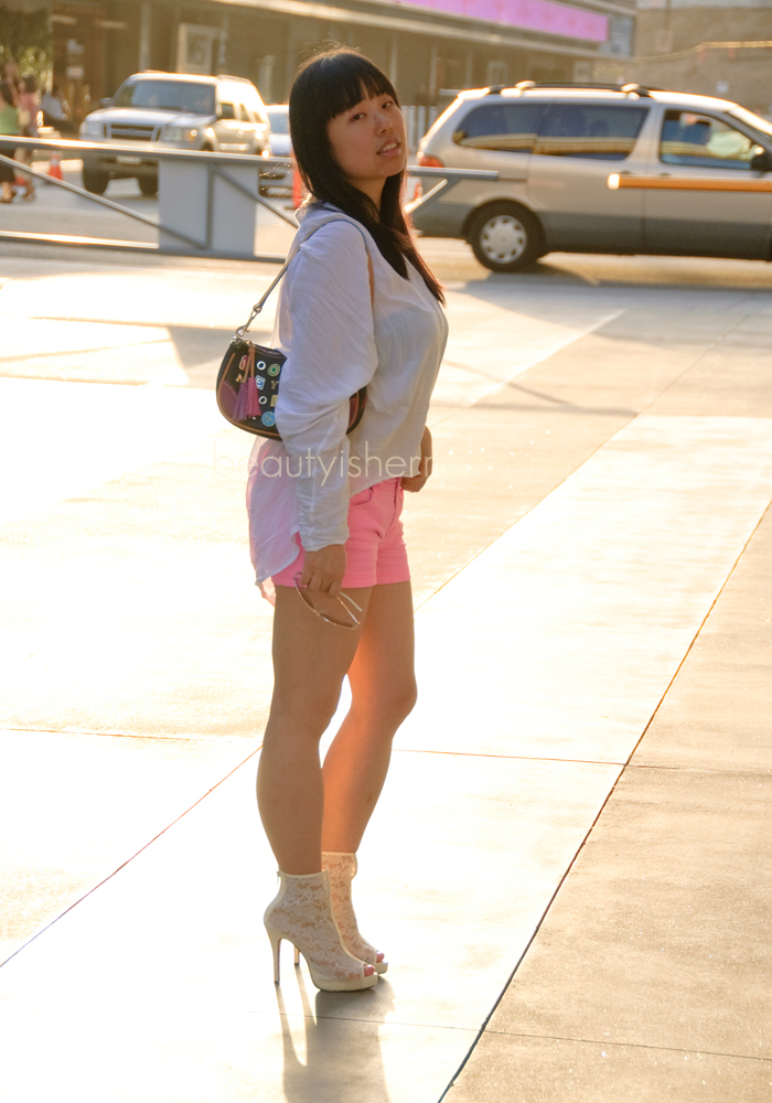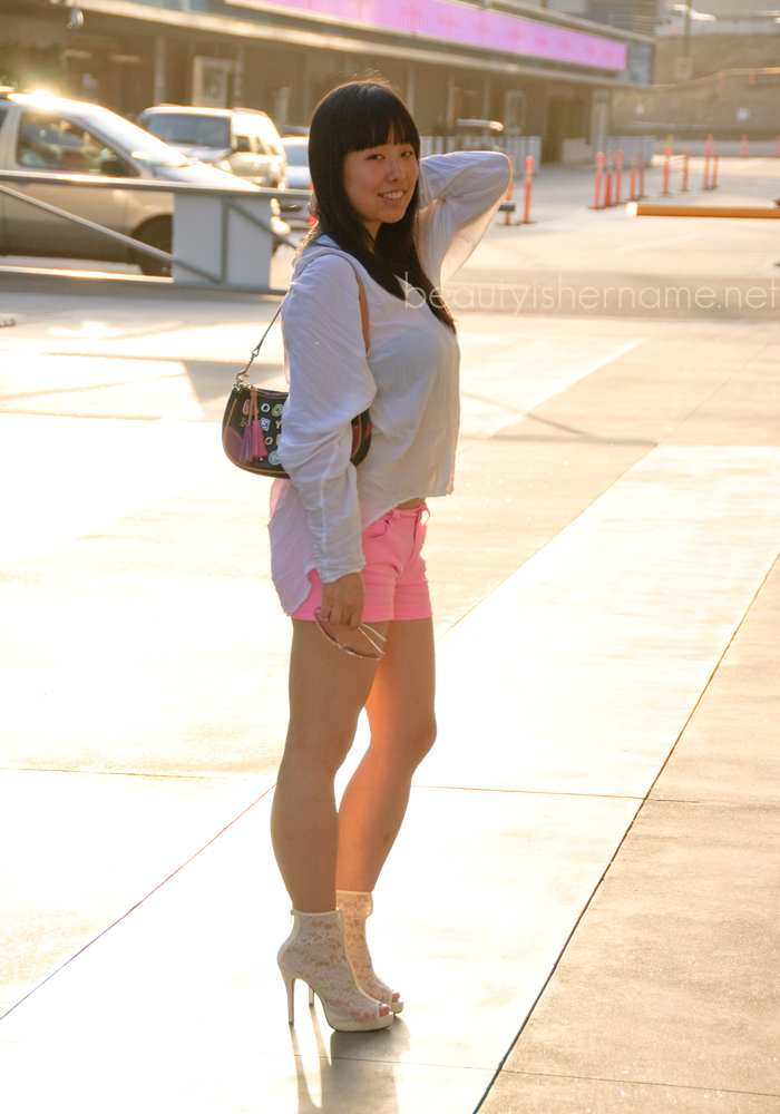 We went to downtown LA's ESPN Zone for the Mayweather fight back in May. It has been awhile since we went there. I wore my new lace heels that I bought from gmarket a few years ago. It was such a good deal that I bought one in black and one in white. I actually got these when I was back in grad school in UK. When I first got them, it was after almost a year of me not wearing heels. I could barely walk with them. But now, they are super comfy and easy to walk in.